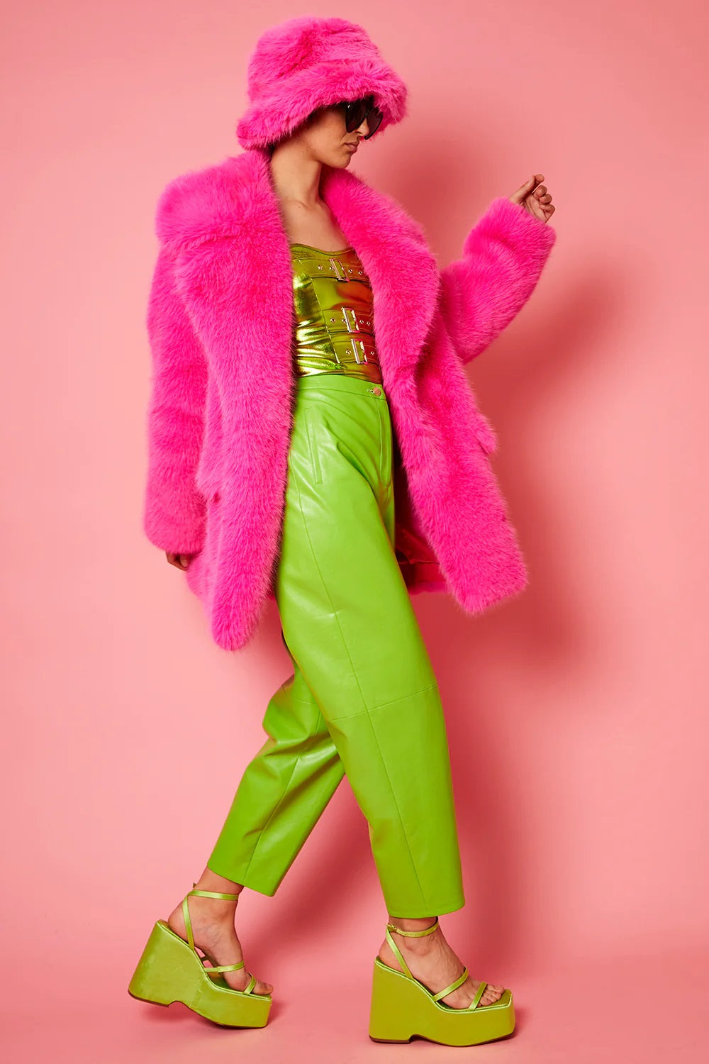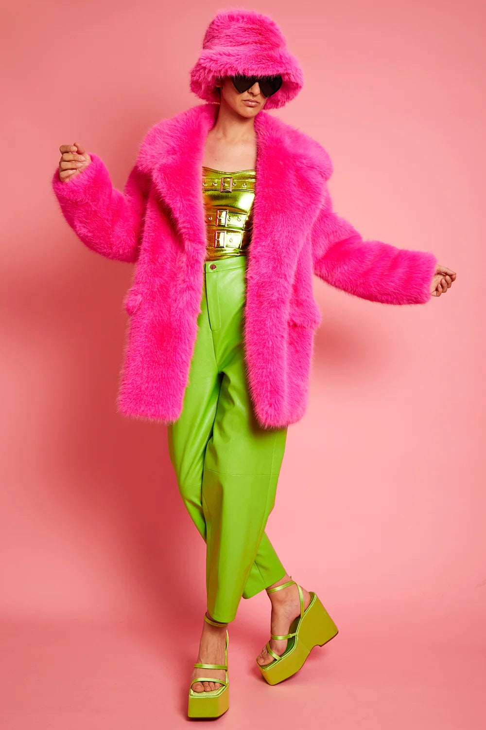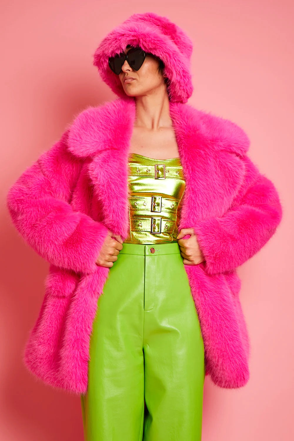 Dieser gestrickte, fuchsiafarbene Midi-Mantel aus Kunstpelz aus Bambus ist die perfekte Wahl, um sich diesen Winter warmzuhalten und dabei stylisch auszusehen! Dank des eleganten, weichen Kunstpelz-Designs und der robusten Bambusstrickkonstruktion fühlen Sie sich rundum wohl und sehen gleichzeitig schick aus. Kuscheln Sie sich ein und genießen Sie den Look!