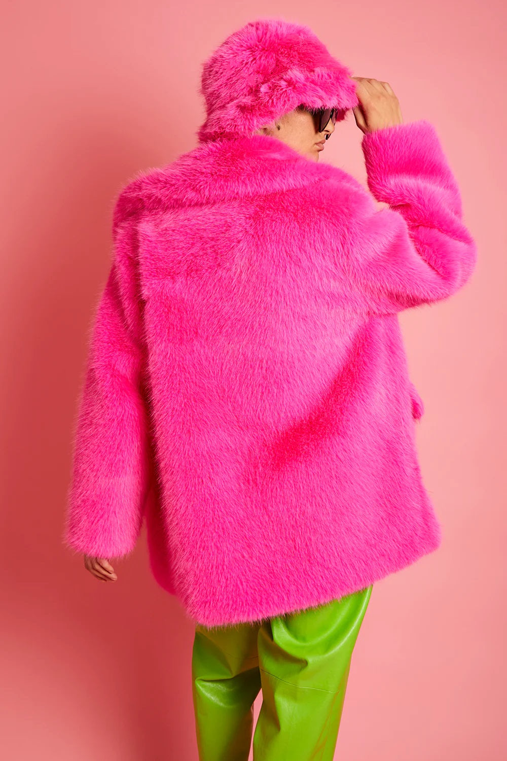 Gestrickter Bambus-Öko-Midimantel in Fuchsia aus Kunstpelz
